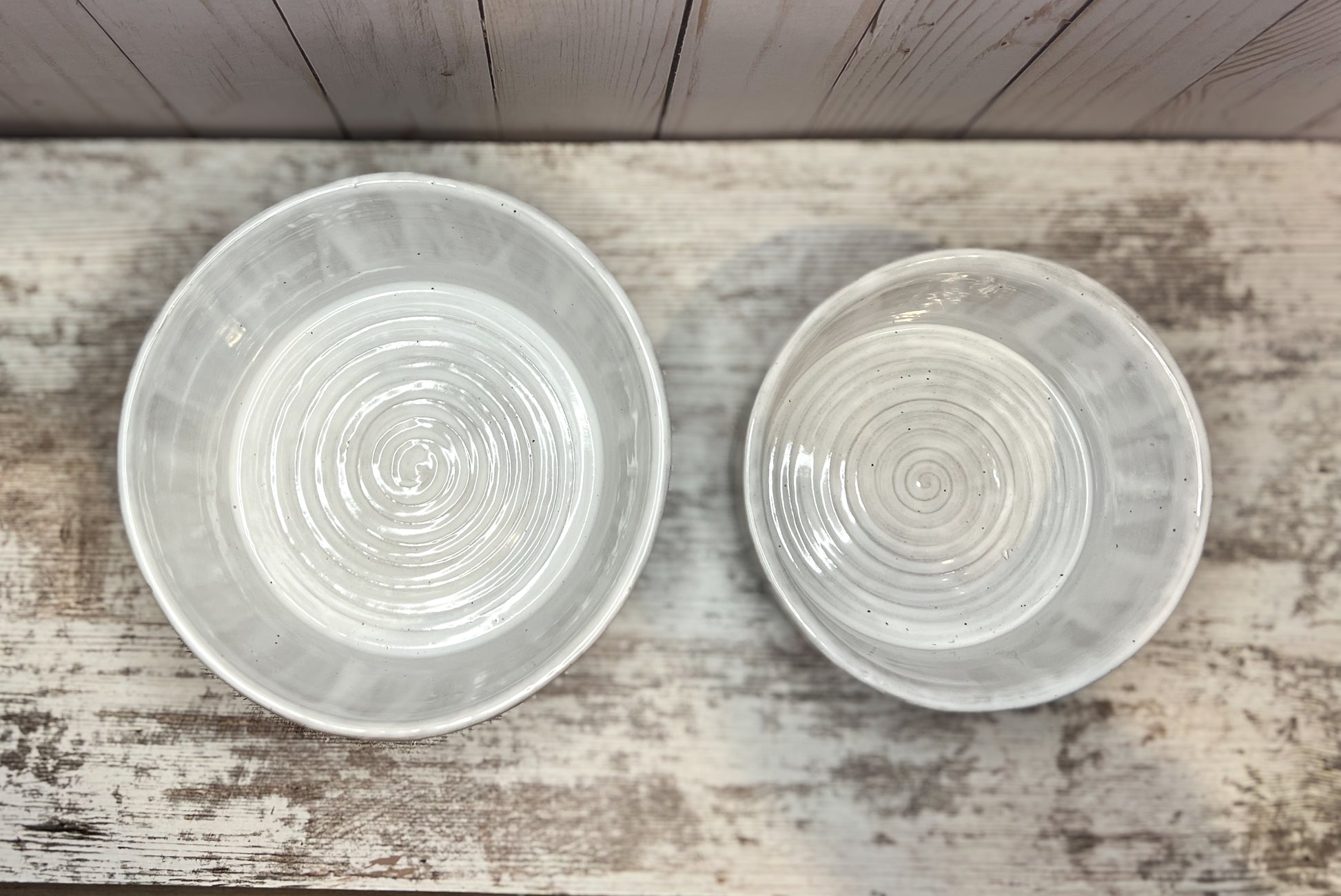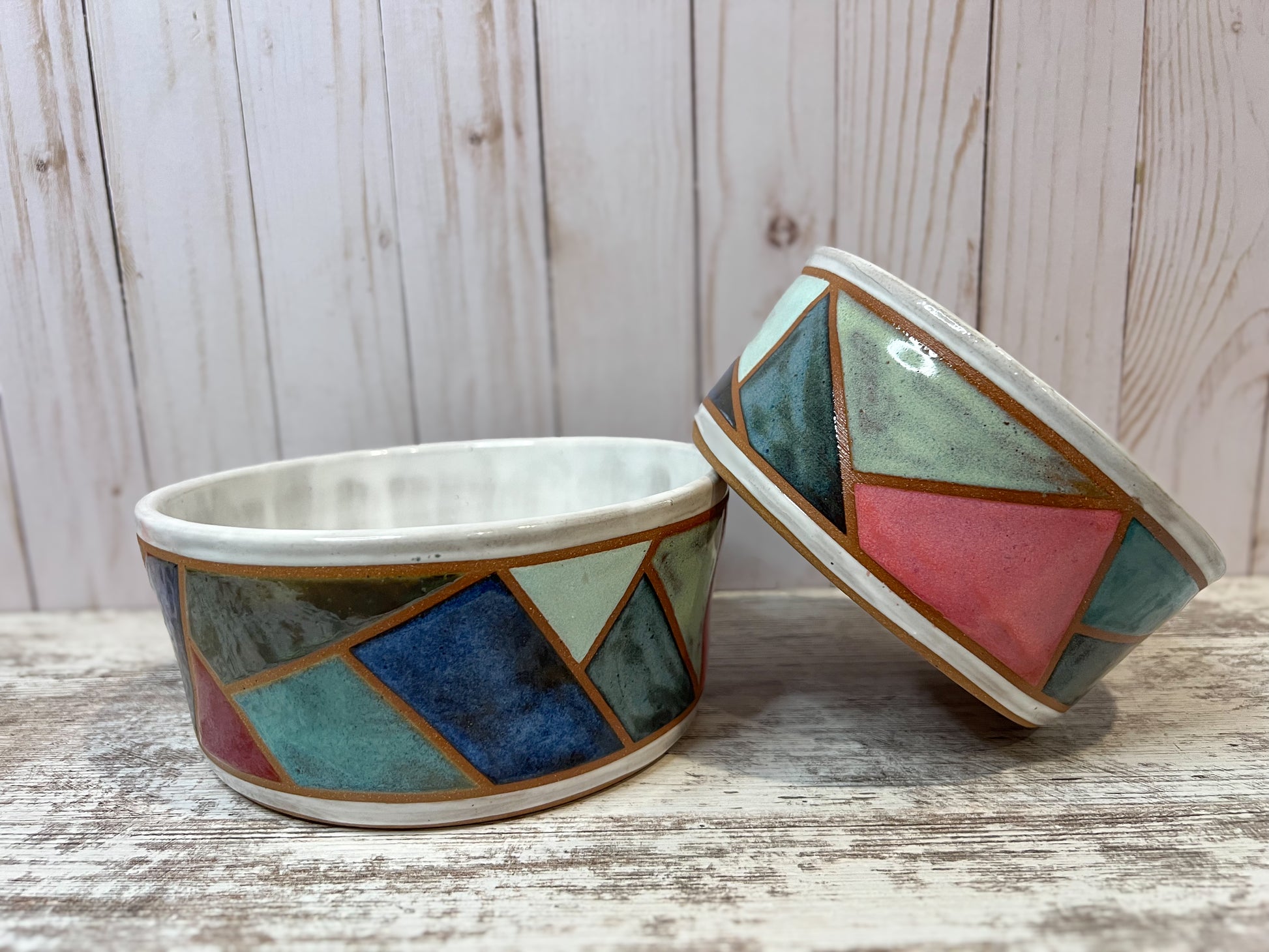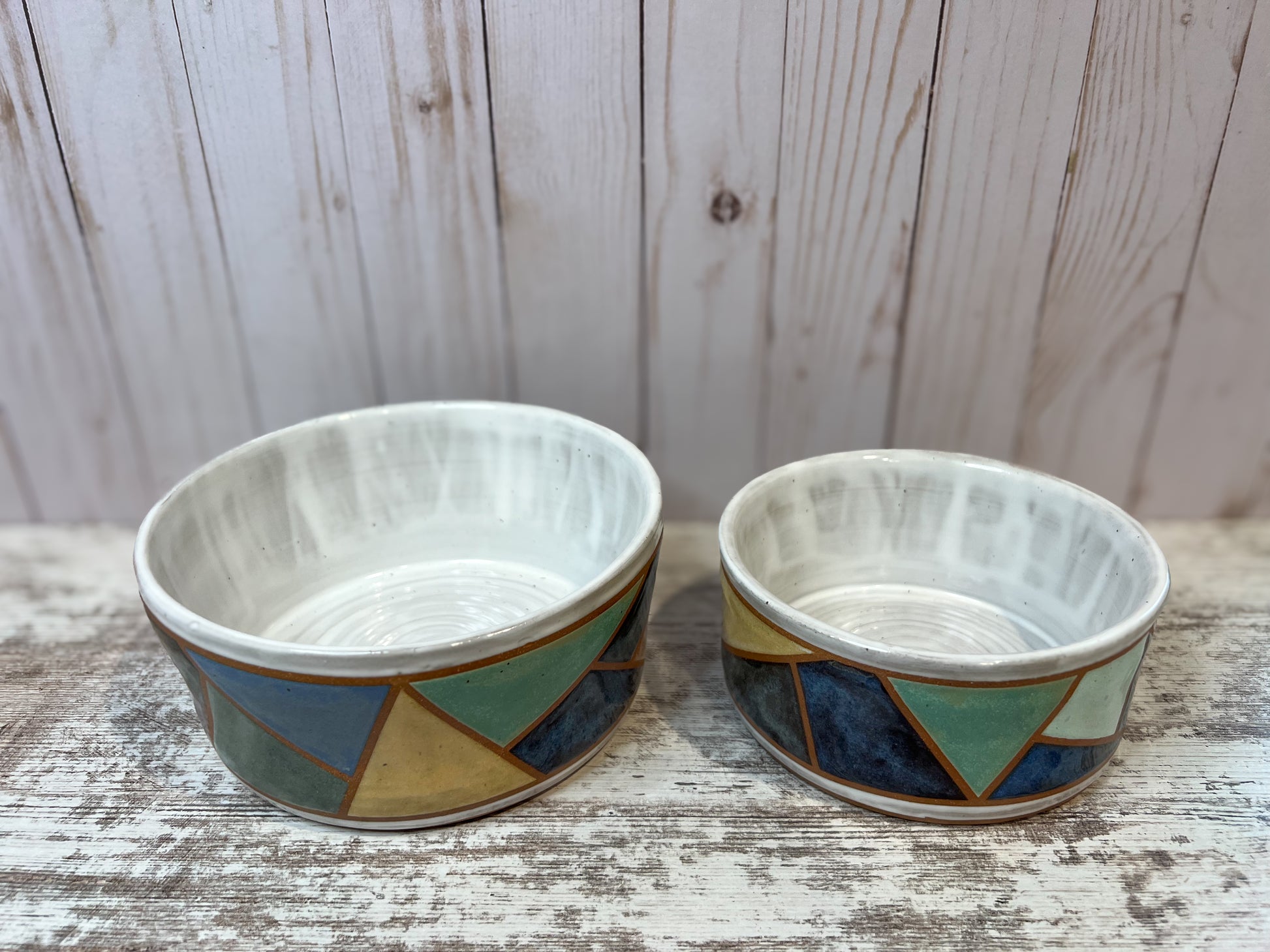 Handmade ceramic dog food and water bowls offer a unique touch to your pet's dining area. Each bowl is one-of-a-kind, featuring distinctive colors, textures, and patterns. Made from durable clay and glazed for a smooth, easy-to-clean surface. The weight of pottery helps prevent tipping, while the natural insulation keeps water cooler for longer. Perfect for pet owners seeking a functional, beautiful, and sustainable bowl for their furry friends.