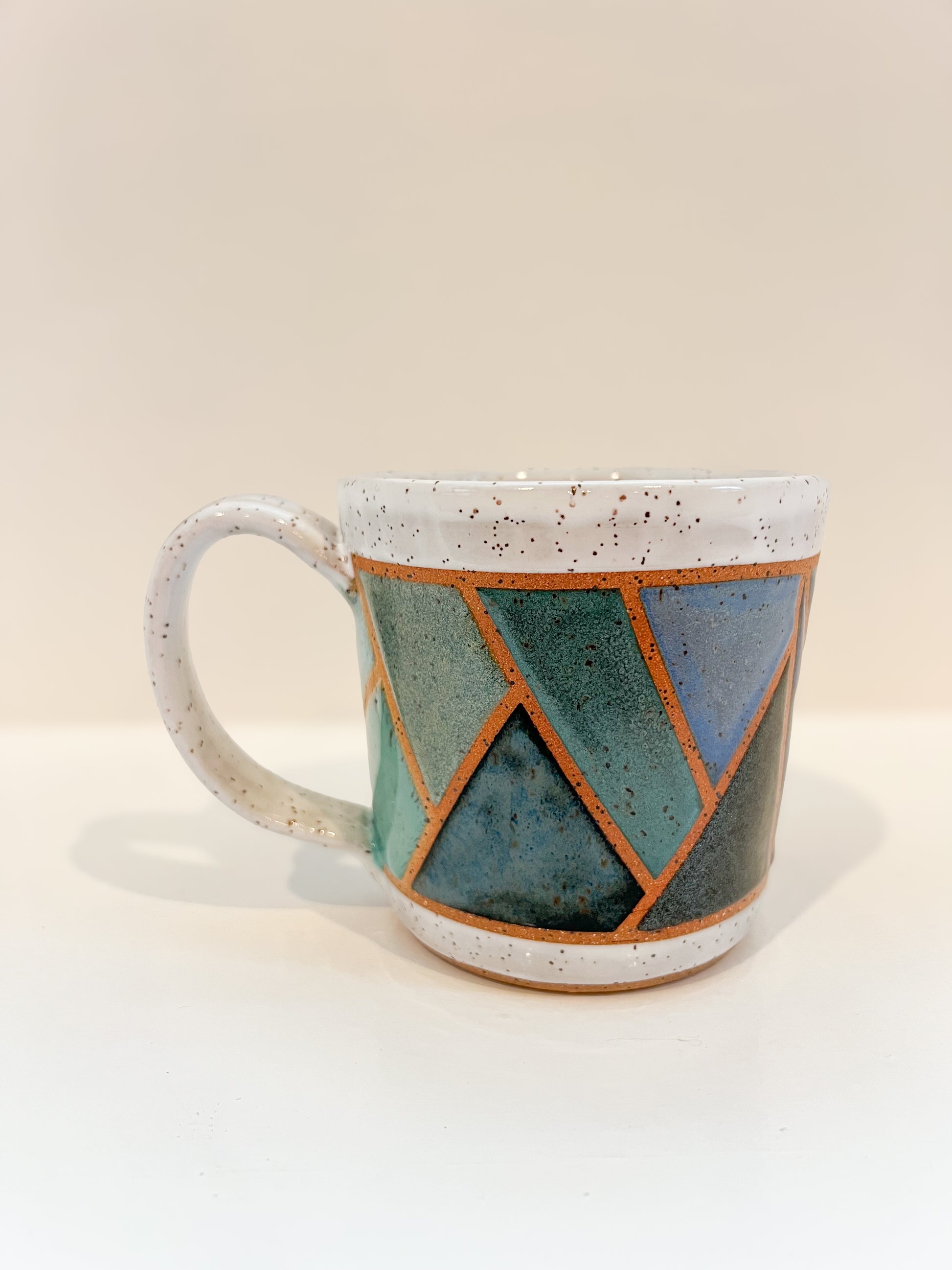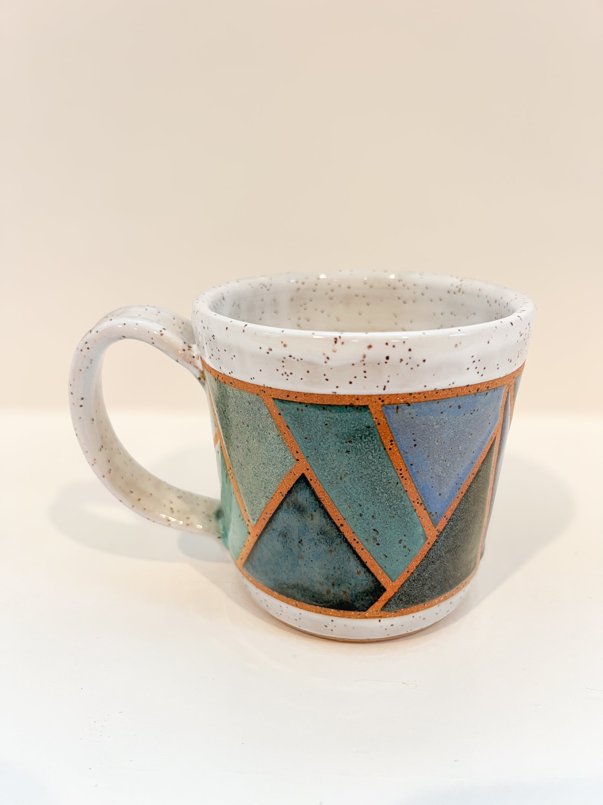 This handmade mug features a distinctive, organic shape with a unique stained glass glaze, offering both beauty and functionality in every sip.